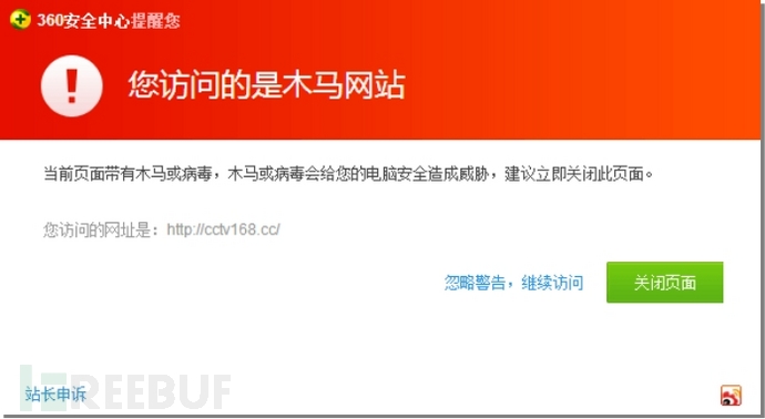 在浏览器中输入网址,回车后现在看到明确的恶意网站提示: